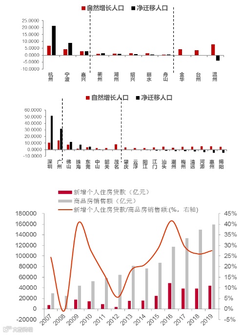具体细分来看,实际上我只看好三条线:第一条是粤港澳大湾区,第二条是长三角的杭州湾的湾区,第三条是长江经济带,它贯穿于从东到西的长线上面。其他地方虽然有亮点,但是没有足够亮。从人口角度来讲,京津冀的人口是净流出的,长三角里面除了浙江去年人口净流入85万以外,江苏人口净流入了2.5万,安徽净流入了4.5万,说明从整个长江角来讲,只有杭州湾湾区是足够亮丽的。浙江净流入的85万人里面,杭州与宁波两个城市的占比达到90%以上。