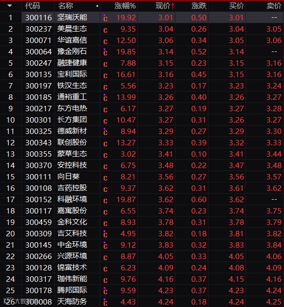 创业板存量个股方面,绩差股、低价股表现十分强势。西部牧业、协创数据、乐凯新材、派生科技、汇金股份、天山生物、坚瑞沃能、联建光电、科融环境、豫金刚石等10只创业板存量股票涨停(涨幅为20%),其中天山生物、坚瑞沃能为连续两日涨20%,而这两只股票也是一度濒临退市的股票。创业板今日共有43股涨幅超10%,低价股全线爆发。
