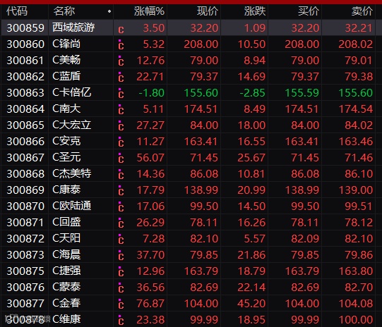 经过改革之后的创业板跟科创板开板时的表现并不一样。科创板在经过第一天的大涨之后,个股随后很快就出现了分化。但从这两天的情况来看,创业板新股表现却非常惊人,首日即出现了最多上涨近30倍的个股,惊奇的是这只股票第二天还能上涨近18%;首日上涨超90%的金春股份,次日还能狂飙77%。这种赚钱效应只能用三个字来形容:“太猛了!”