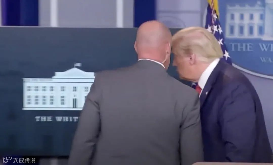 当地时间8月10日下午,美国总统特朗普正在进行疫情简报会,在开始不到3分钟后,工作人员出现向特朗普耳语后,突然中断了简报会。