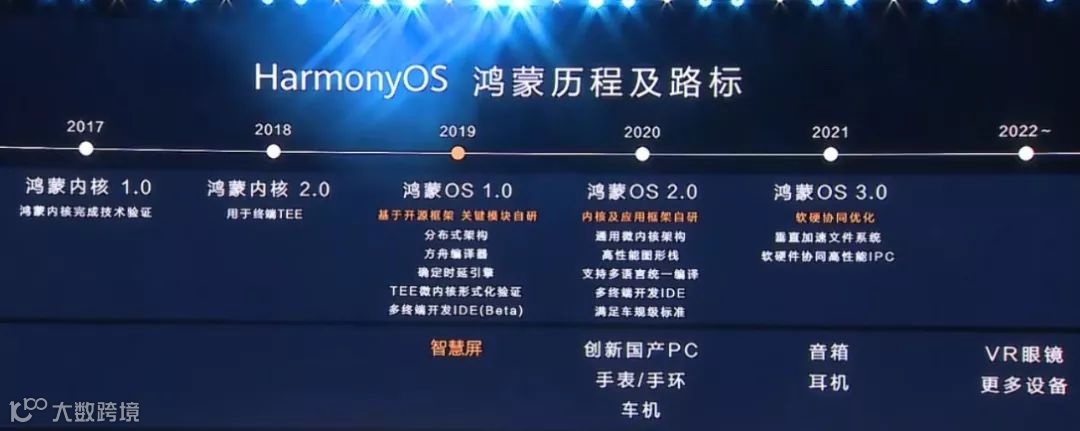 根据华为鸿蒙路线图,在应用第一代鸿蒙OS1.0的智慧屏之后,2020年鸿蒙OS将升级到2.0版本,内核、应用框架也实现了自研,应用场景将扩大到PC、手表、车机等。后续,华为还将在音箱、耳机、VR等生活娱乐相关设备上寻求更多突破,追求覆盖生活全场景。