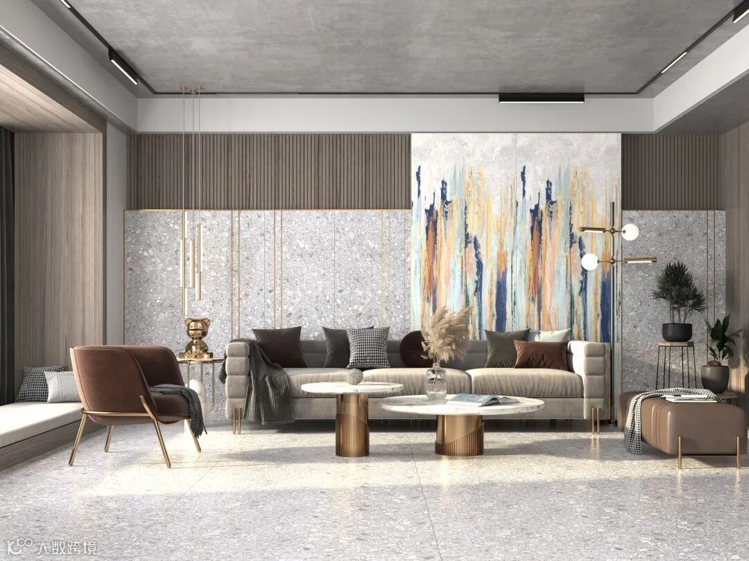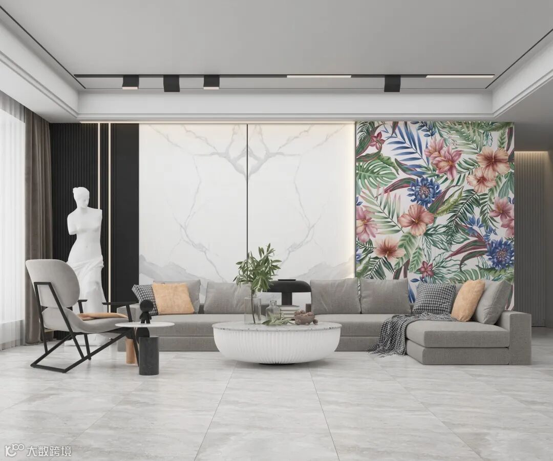 在客厅不拘一格的花样铺法,可以大大提升空间层次,既能实现过度分区的功能,又有更加随性、自由的感觉。