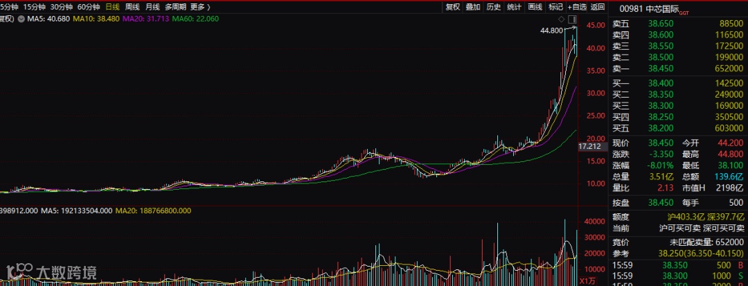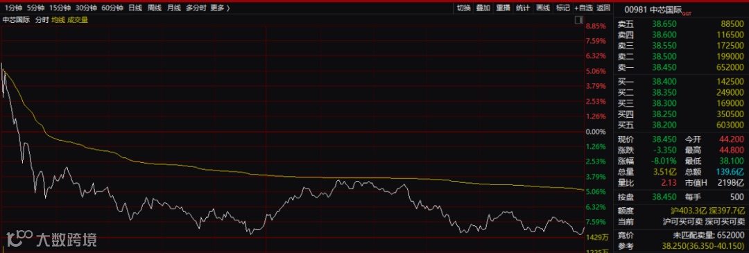 5 月24 日晚,香港、美国两地上市的中芯国际在香港证券交易所发布公告称,公司决定主动从纽约证券交易所退市,且已得到董事会批准。在那之后,中芯国际的港股开始一路上涨,一年涨幅接近4倍。目前港股市值已经高达2198亿港元。