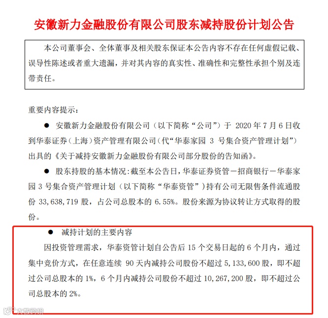 近日,以支付、融资担保等多元金融为主业的新力金融持续上涨,7月6日晚间,新力金融股东第三大股东华泰证券资管-招商银行-华泰家园 3 号集合资产管理计划(简称“华泰资管”)向上市公司出具减持告知函。