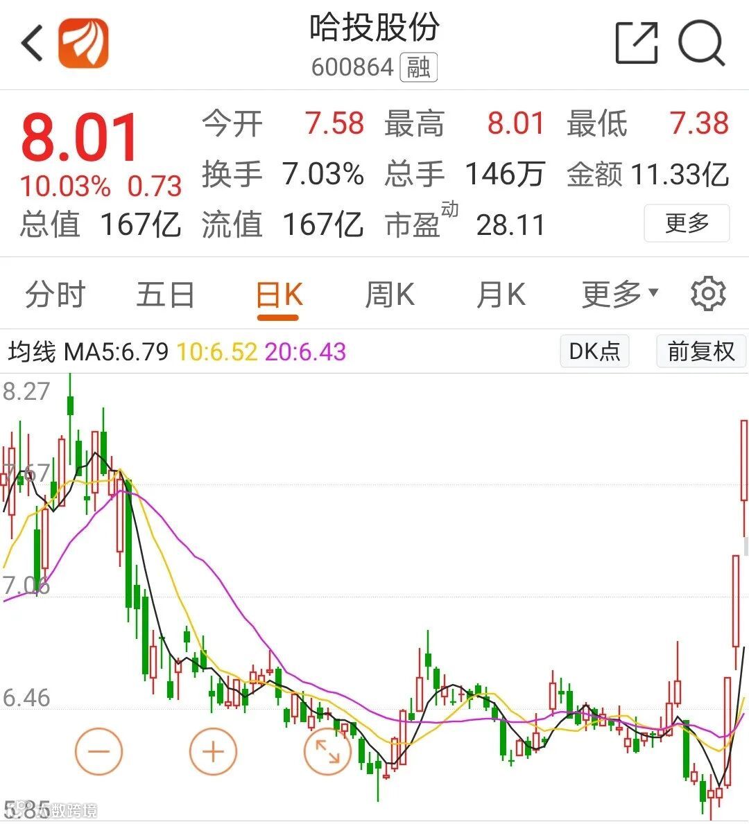 实际上,哈投股份是典型的券商概念股,实际控制人为哈尔滨市国资委,江海证券是哈投股份全资子公司,哈投股份从7月2日交易日直至7月6日已经收获三个涨停板,股价从6.02元/股上涨至8.01元/股。