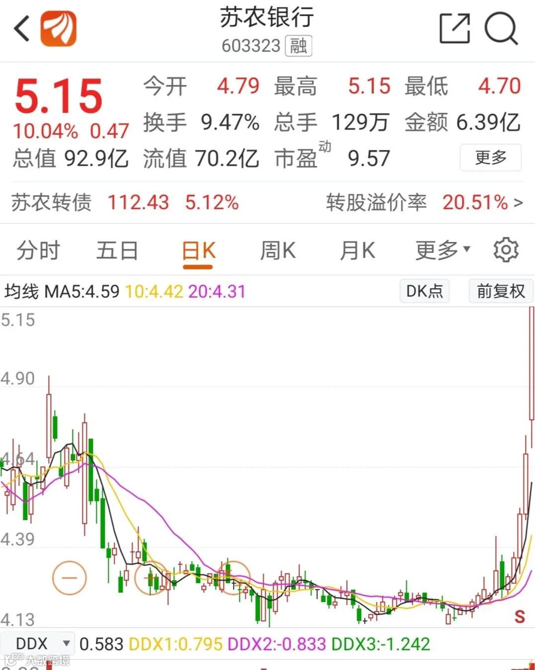7月6日,一直以来大面积破净的银行股也迎来修复。苏农银行强势涨停,收于5.15元/股,不过仅仅是估值修复,较年初仅上涨0.81%,但是仍然低于每股净资产6.49元/股,这意味着苏农银行仍然在“破净”状态。