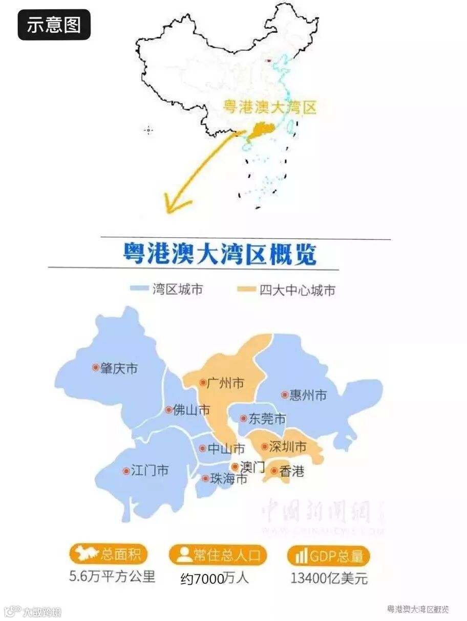 粤港澳大湾区包括香港特别行政区、澳门特别行政区和广东省广州市、深圳市、珠海市、佛山市、惠州市、东莞市、中山市、江门市、肇庆市(以下称珠三角九市),总面积5.6万平方公里,2017年末总人口约7000万人,是我国开放程度最高、经济活力最强的区域之一,在国家发展大局中具有重要战略地位。建设粤港澳大湾区,既是新时代推动形成全面开放新格局的新尝试,也是推动“一国两制”事业发展的新实践。为全面贯彻党的十九大精神,全面准确贯彻“一国两制”方针,充分发挥粤港澳综合优势,深化内地与港澳合作,进一步提升粤港澳大湾区在国家经济发展和对外开放中的支撑引领作用,支持香港、澳门融入国家发展大局,增进香港、澳门同胞福祉,保持香港、澳门长期繁荣稳定,让港澳同胞同祖国人民共担民族复兴的历史责任、共享祖国繁荣富强的伟大荣光,编制本规划。