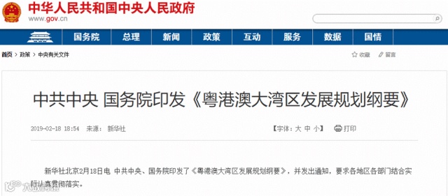 《粤港澳大湾区发展规划纲要》全文如下。