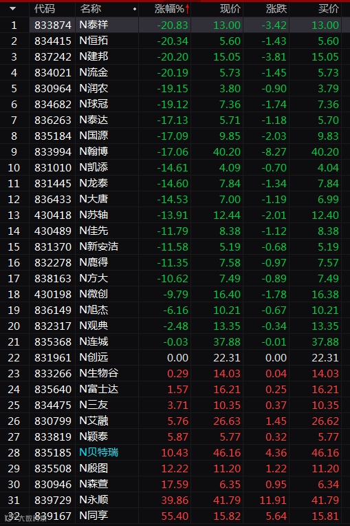7月27日,新三板精选层开板。截至收盘,该板块32股收盘有10只上涨,N同享涨55.4%表现最佳;21只下跌,N流金等4股跌超20%。这一表现远弱于科创板首日开板、创业板首日开板的表现。