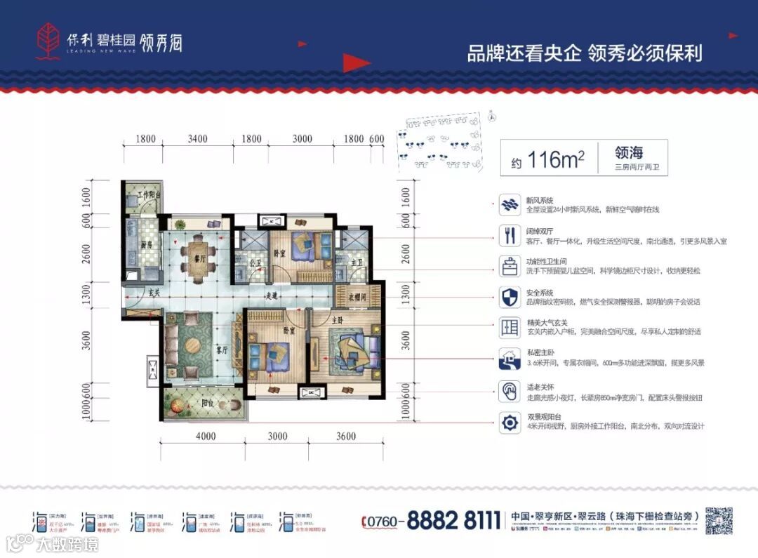 保利碧桂园·领秀海全新蓝湾组团约100㎡和116㎡三房两厅两卫全城热销中,保利国字号实力,征服每一处关乎生活质量的细节!