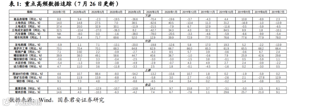 综上,我们认为,经济复苏进程已至“半山腰”,未来2-3月经济动能将仍较强回暖。但是,出口仍然有较强的不确定性,新经济部门受影响较大,而中美关系短期也在持续承压。在这关口,我们认为政策短期不会回撤,“六保”、“六稳”仍将是三季度经济政策主要基调。