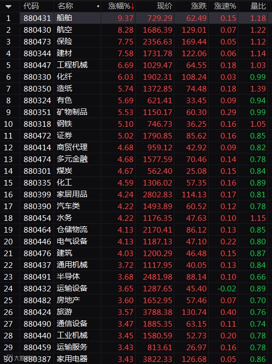 从市场上涨的结构来看,主要是军工、保险和建材等板块。与此同时,上周人气涣散的券商再度发力,而有色化工煤炭等强调期板块亦全线上涨。