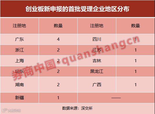 若以地区分布统计,首批18家受理的新申报企业中,来自广东的企业最多,共有4家。湖南、山东、浙江、上海四个地区各有2家。