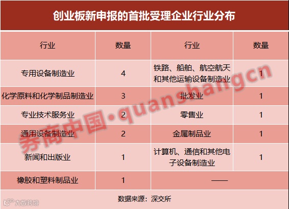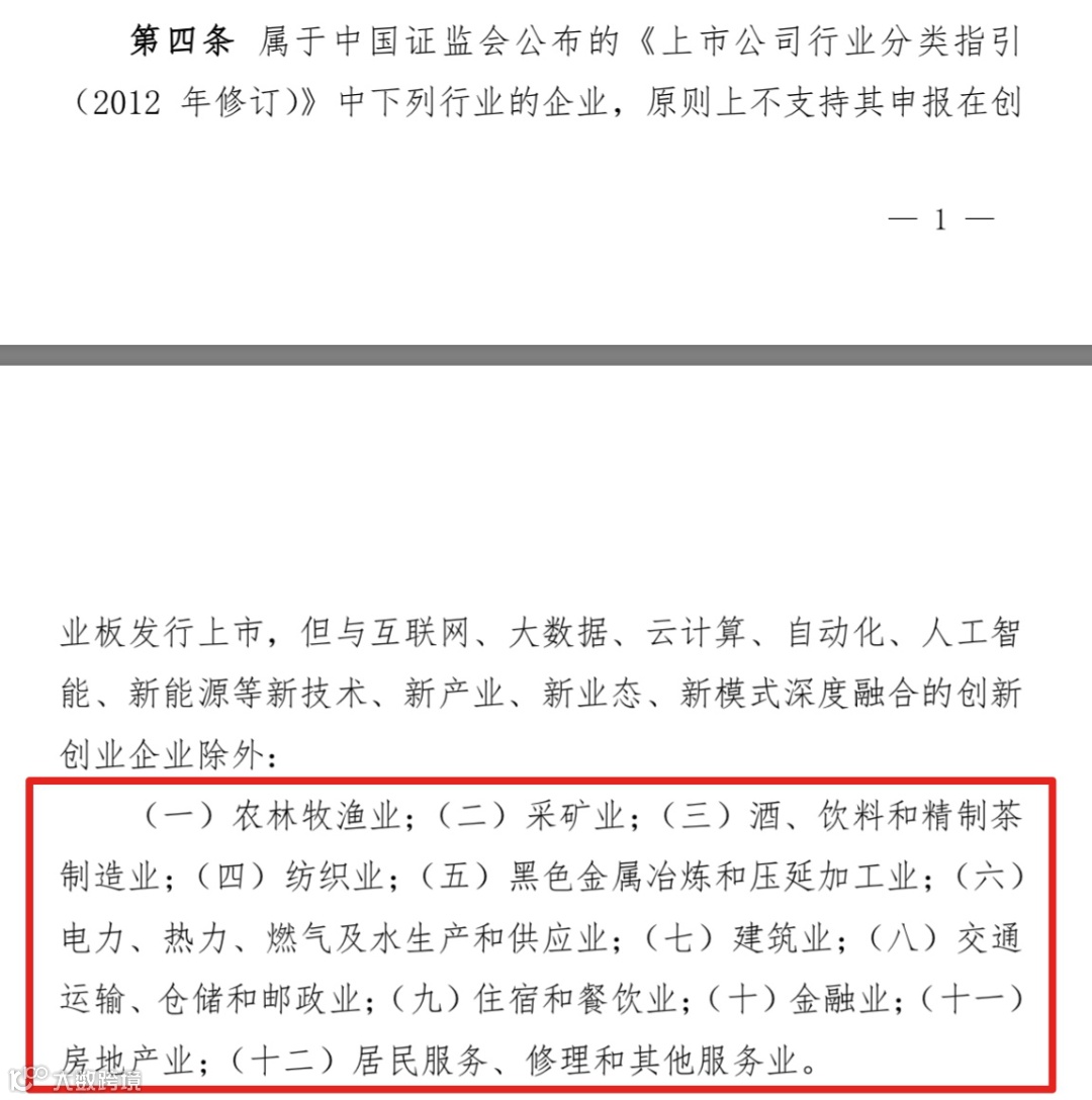 行业也备受市场关注。据了解,新申报企业适用“行业负面清单”,根据《创业板企业发行上市申报及推荐暂行规定》,12个传统行业原则上不支持,除非与“四新”深度融合的创新创业企业。