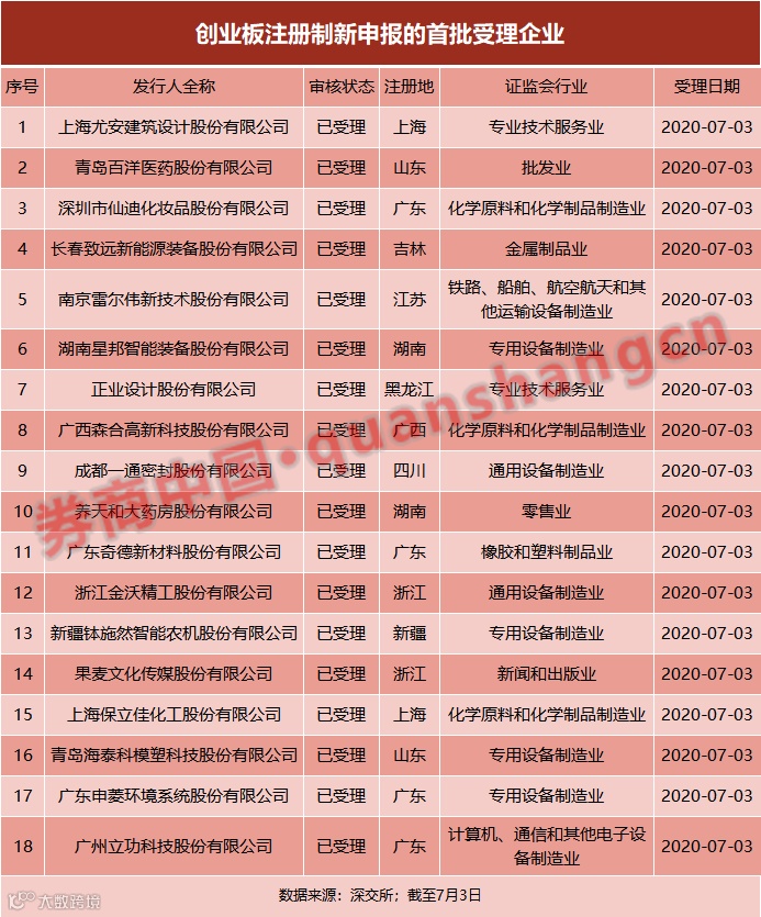 7月3日深交所披露新受理的19家创业板IPO企业名单,其中有18家为本周新申报的项目。