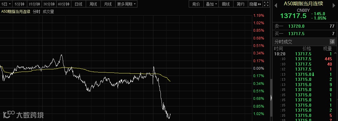 A50指数隔夜表现十分顽强,但受各种消息刺激,今天也出现了跳水行情。