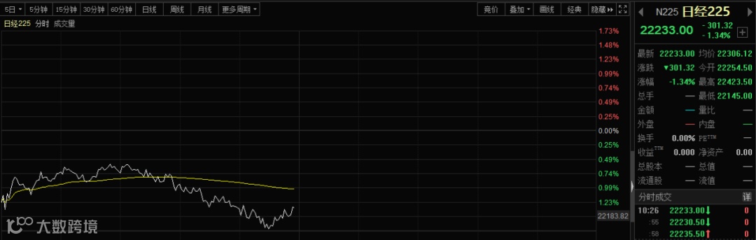 日经指数早盘略微企稳之后亦一度出现跳水的情况。