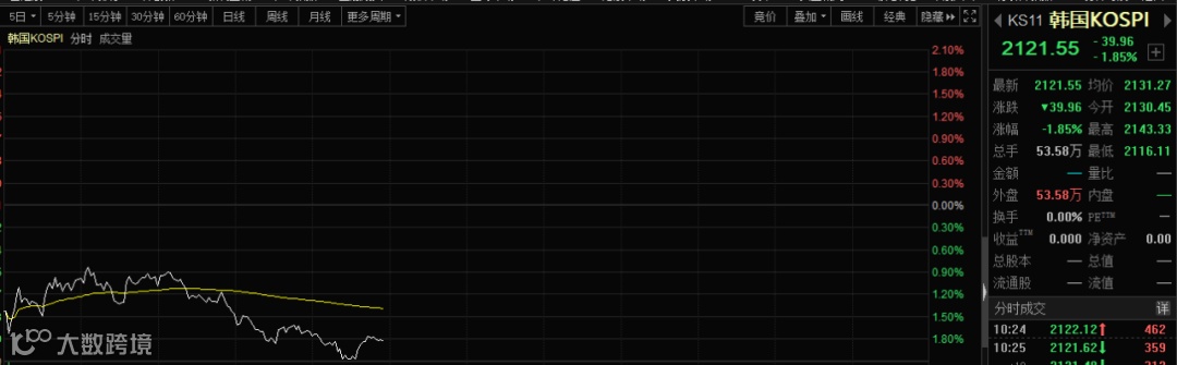 受此影响,亚太市场亦全线低迷。韩国股市场一度杀跌超过2%。