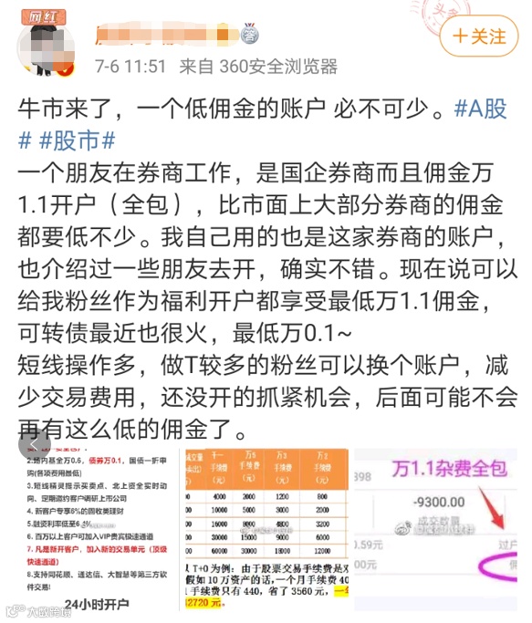 无论是通过何种渠道,对于已沉浸市场多年的老股民来说,超低佣金才是“携财转场”的终极动力。在官方渠道,各家券商还维持着“万二五”、“万二”的一团和气,但在私下“吆喝”中,在抖音、微博、知乎等平台上,“低至万一”、“万一免五”等“特价”活动仍是触手可及。