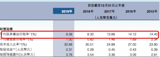 中国信达近年承受较大的股东权益回报率ROE下行压力。2014年到2017年,其平均ROE稳定在14%附近,但此后有所下滑,2018年ROE为8.32%,2019年ROE为8.56%。