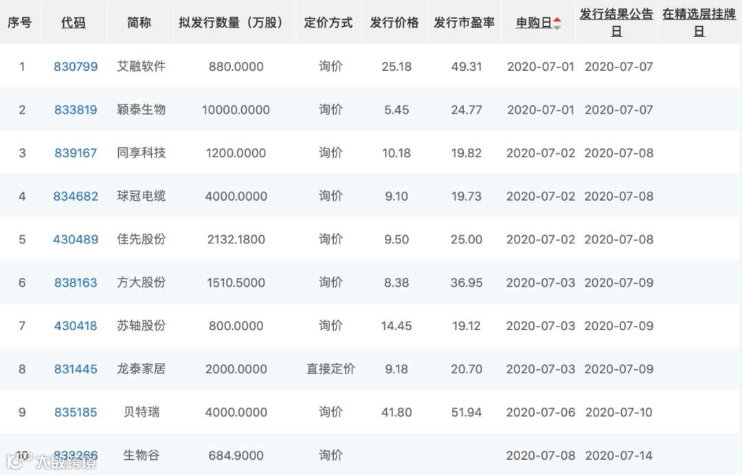 首先,优质中小企业积极申报精选层。199家挂牌公司公告拟公开发行并在精选层挂牌,70家企业申报已获受理。受理公司停牌时总市值中值为10.73亿元、股东人数中值为165人。截至目前,共有29家公司处于公开发行状态,其中8家已经启动了申购。