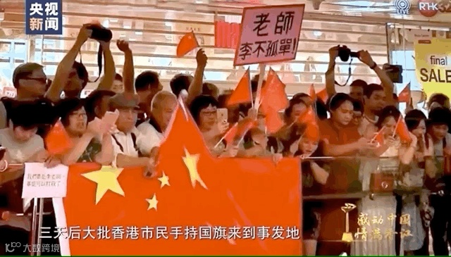 手持国旗来到事发地,声援李老师