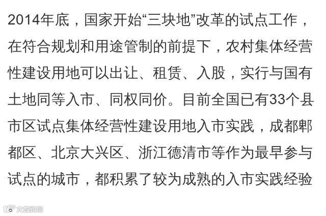 (1)社会资本通过出让、转让或出租的方式获得集体建设用地的流转(“三块地”改革规定的33个试点地区);