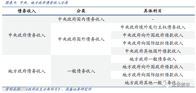 根据《2020年政府收支分类科目》,对于中央政府而言,债务收入分为国内债务收入和国外债务收入,其中国外债务收入又分为境外发行主权债券收入、向外国政府借款收入、向国际组织借款收入和其他国外借款收入。对地方政府而言,2014年《国务院关于加强地方政府性债务管理的意见》(以下简称“43号文”)和2014年修订后的《中华人民共和国预算法》(以下简称“《预算法》”)施行后,地方政府举借债务只能通过发行政府债券的方式,其中没有收益的公益性事业发展确需政府举借一般债务的,由地方政府发行一般债券融资,主要以一般公共预算收入偿还。地方政府将一般债务收支纳入一般公共预算管理,进而构成了债务收入科目。“债务收入”项一般只反映在省级财政预算平衡表中,更低层级的财政由于无法直接举借债务,而是需要省级财政发行后将相关资金转贷,因此一般以“债务转贷收入”科目纳入转移性收入核算。