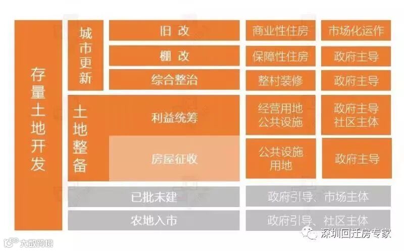 土地整备-整村统筹:在深圳,城市更新与土地整备并列为城市土地二次开发利用的“两架马车”。而整村统筹可以说是二者取长补短后应运而生的新思路。