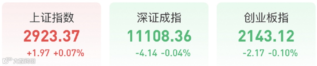 今天A股市场的表现其实比预期的要差不少。大市呈冲高回落态势,创业板指振幅较大。上证指数收盘涨0.07%,报2923.37点,录得5连升;深证成指跌0.04%,报11108.36点;创业板指跌0.1%,报2143.12点,连跌两日;万得全A涨0.03%;两市成交额近7800亿元,创阶段新高;北向资金净买入44亿元。