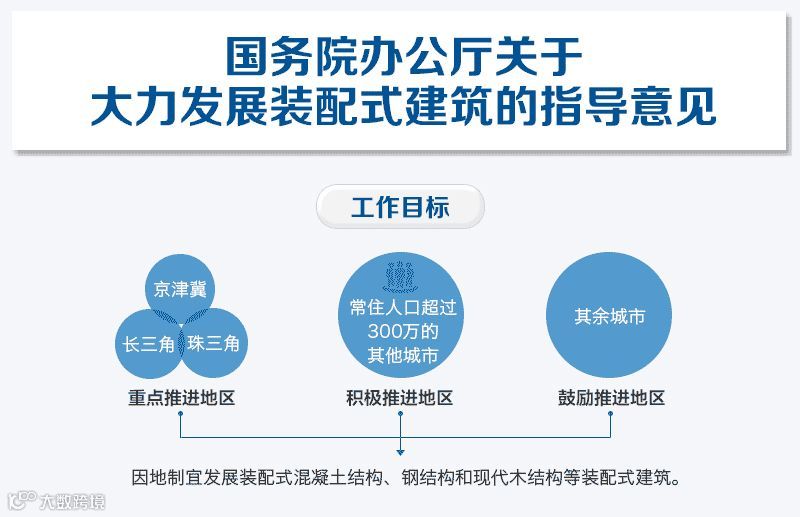 《关于大力发展装配式建筑的指导意见》的文件表明发展装配式建筑是推进供给侧结构性改革和新型城镇化发展的重要举措,有利于节能环保、提高生产力水平,有利于促进建筑业与信息化工业化深度融合、培育新产业新动能。发展装配式建筑是建造方式的重大变革,符合创新、协调、绿色、开放、共享的发展理念,促进建筑产业转型升级。