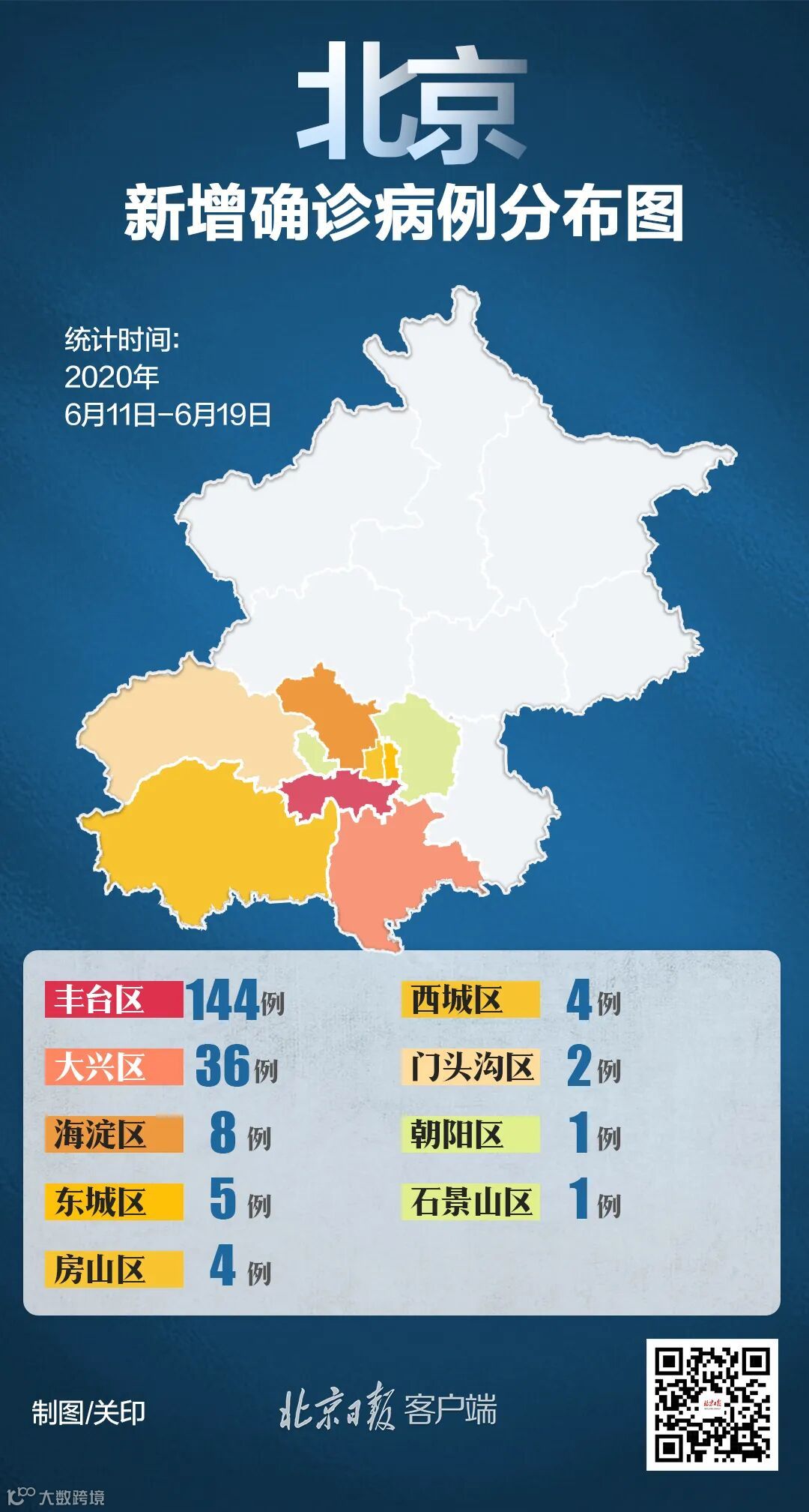 新增确诊病例中,海淀区1例、丰台区13例、大兴区8例。