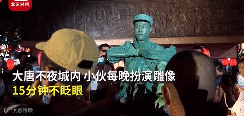 每晚扮演名为“奋斗在路上”的雕塑
