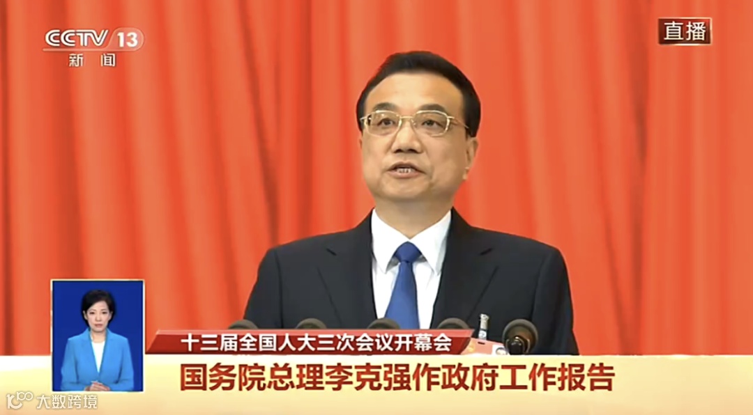 国务院总理李克强代表国务院向十三届全国人大三次会议作政府工作报告