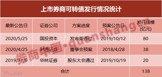 包括此次国投资本80亿可转债在内,目前还有财通证券的38亿和华林证券的20亿可转债项目等待发行,合计约138亿元。其中,国投资本的项目已经被审核通过,距离发行只差一步,而财通证券和华林证券的项目,仍分别处于董事会预案、股东大会通过阶段,还需耐心等待落地时机。