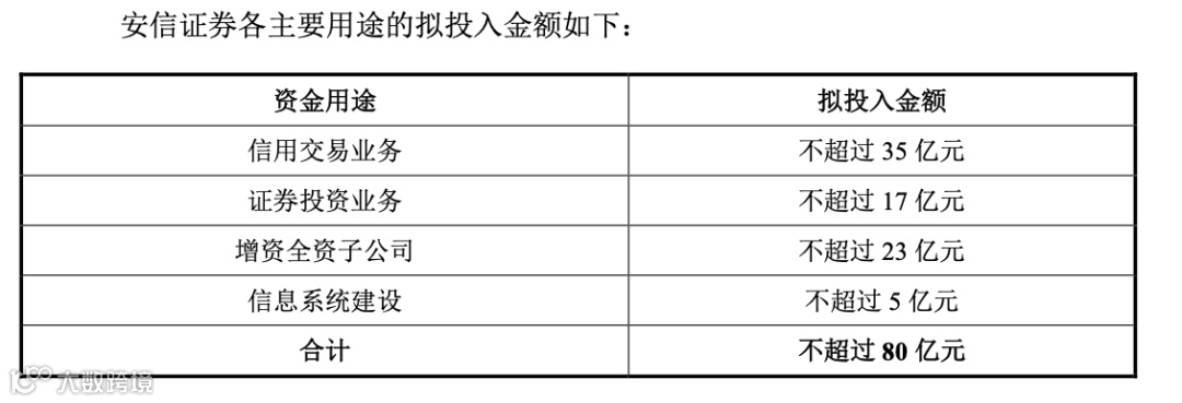 根据此前的募资安排,国投资本本次公开发行可转债拟募资总额不超过80亿元(含80亿元),扣除发行费用后将全部用于向安信证券进行增资,通过增加安信证券的资本金,补充其营运资金,优化业务结构,扩大业务规模,提升市场竞争能力和抗风险能力。