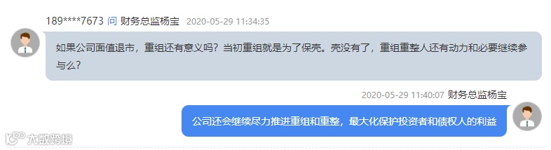 同样,也有投资者质疑,“如果公司面值退市,重组还有意义吗?壳没有了,重组重整人还有动力和必要继续参与么?”盛运环保财务总监则表示,还会继续尽力推进重组和重整,最大化保护投资者和债权人的利益。