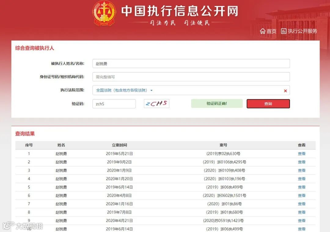目前,赵锐勇本人名下已有10条被执行信息。此外,2019年12月,赵氏父子还曾被杭州中级人民法院以1307.69万元高价悬赏征集财产线索。
