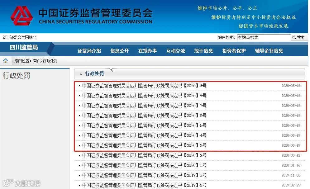 日前,四川证监局一次性挂出7份行政处罚决定书,对长城动漫及实控人赵锐勇、时任总经理、财务总监等人进行处罚。
