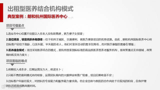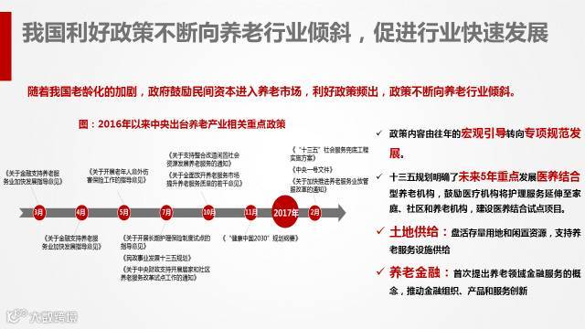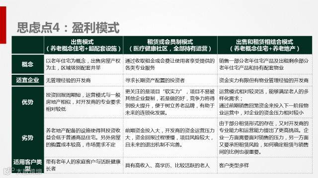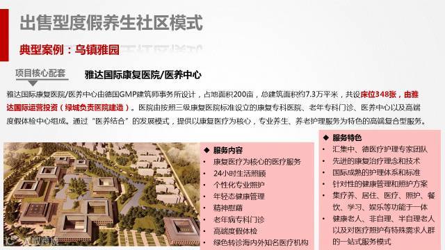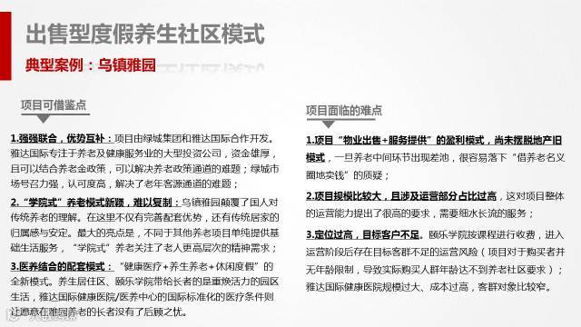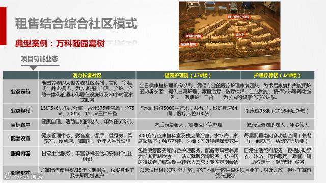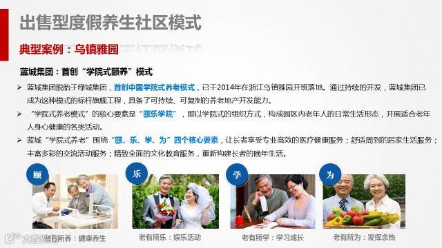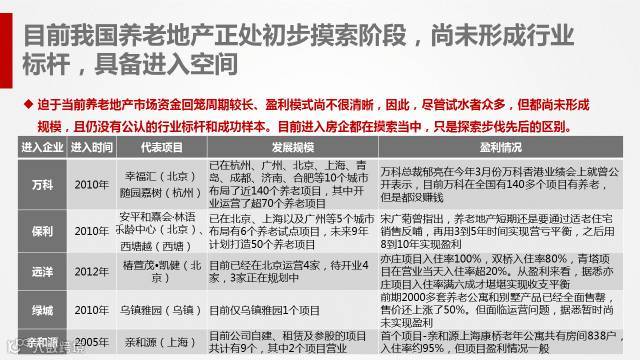 越来越多的企业瞄准养老地产市场,不完全统计,目前已有超过80家企业分食养老这一“蛋糕”。本篇以PPT形式,解读养老地产的机会点?商业模式?典型案例?