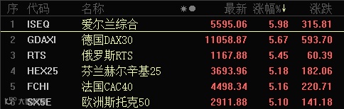 其实,相对于昨晚最疯狂的还不是美股,而是欧洲市场。欧股昨晚全线暴涨,欧洲斯托克50涨幅超过5%,法国和德国市场涨幅更大,英国市场的涨幅亦超4%。