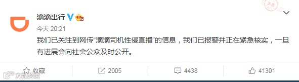 6月11晚,滴滴公司在其官方微博发布消息称,针对此事已报警,正在核实。