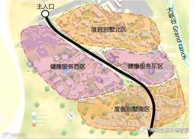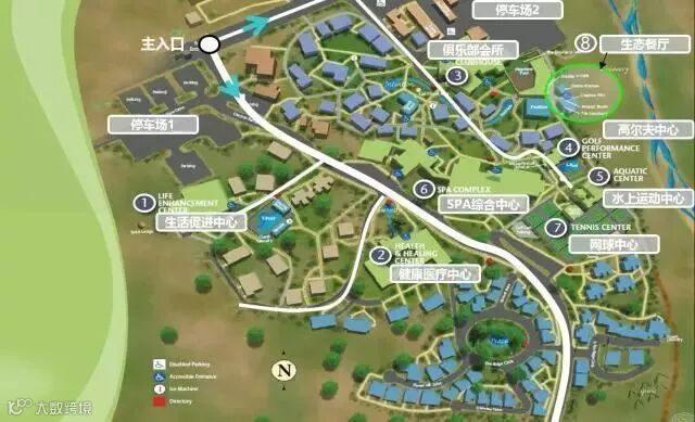 ▶ 功能布局:由八大功能设施和度假别墅组成。