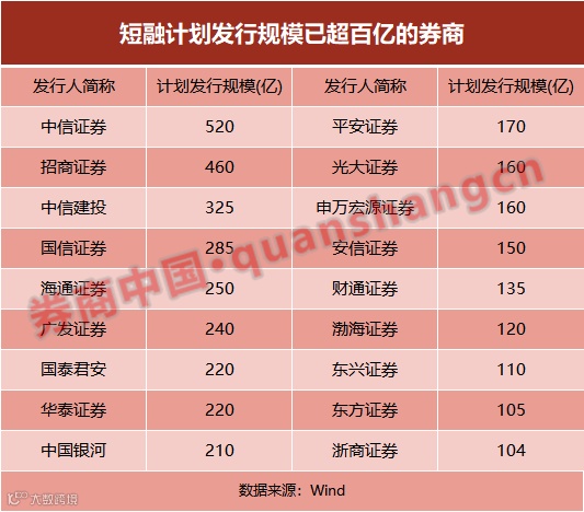从券商角度来看,有券商发短融累计规模已经超过百亿元。根据券商中国记者对Wind数据统计,中信证券已经发出11期短融,募资合计高达520亿!