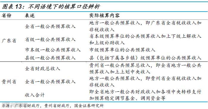 ②全口径:核算的是地方政府综合财力和地方政府财政收入,前者的范围更大,包括了国有经营资本预算收入或者预算外收入,后者是一般公共预算收入、政府性基金收入和预算外收入的总和。
