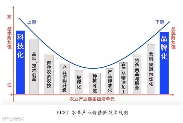 (一)世界农业的竞争是价值的竞争,农业产业价值分配呈现“微笑曲线”特征。