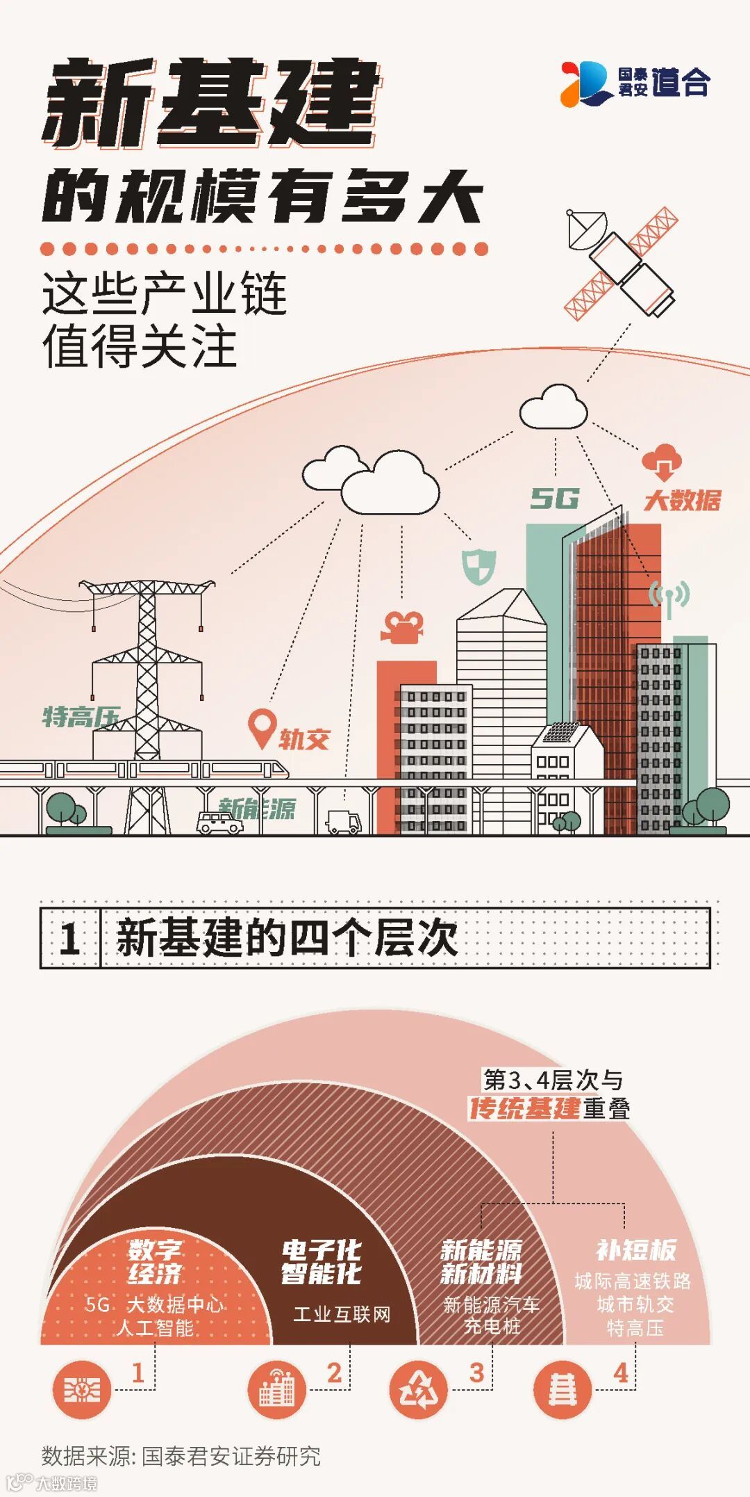加快推动5G网络部署,促进光纤宽带网络的优化升级,加快全国一体化大数据中心建设。稳步推进传统基础设施的“数字+”“智能+”升级。同时,超前部署创新基础设施;