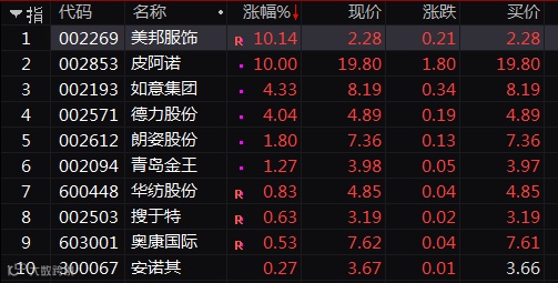 在梦洁股份带动下,C2M概念股逆市爆发,截至收盘,美邦服饰、皮阿诺涨停,如意集团、德力股份涨逾4%。