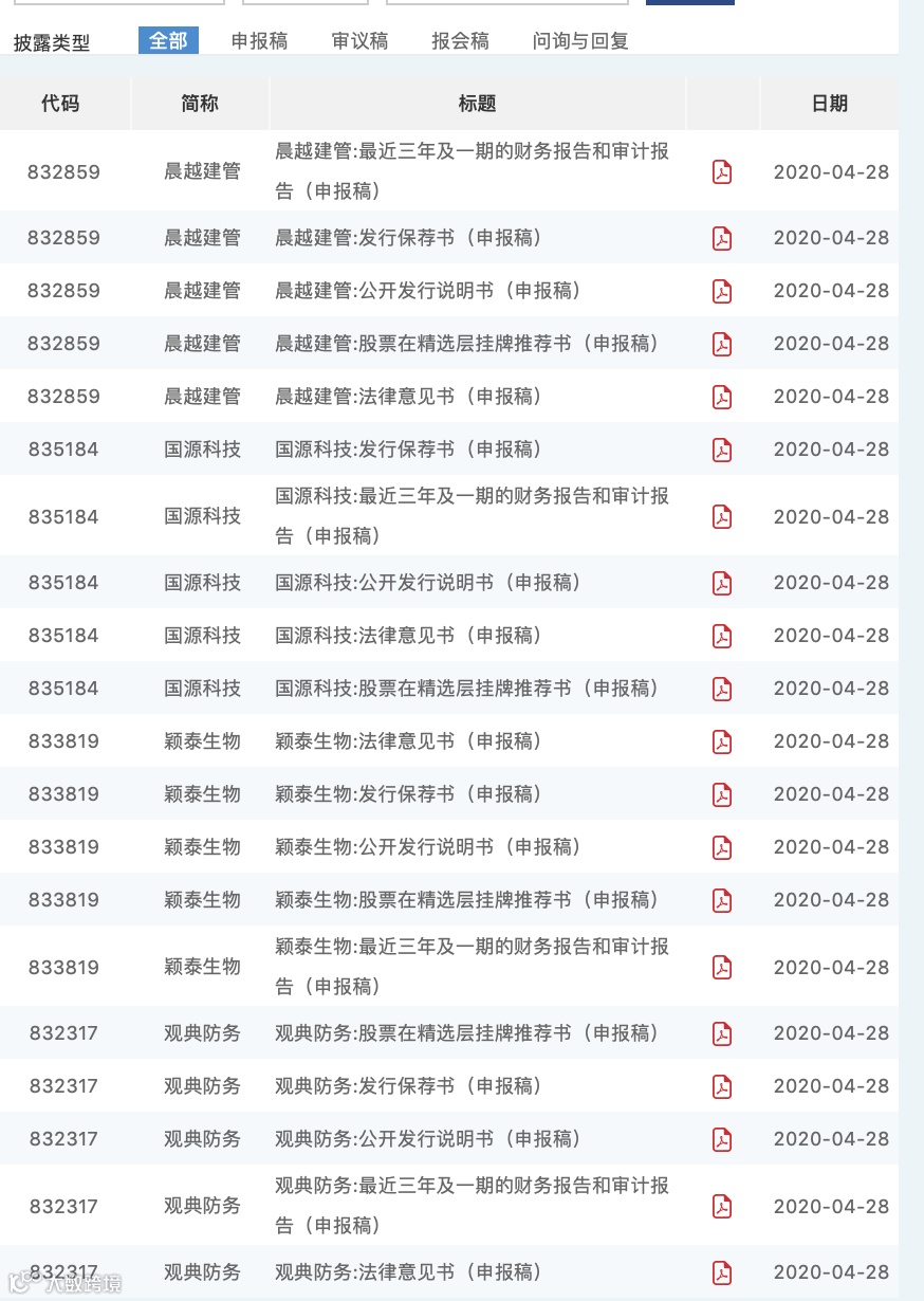 4月28日晚,股转系统正式受理了观典防务、颖泰生物、国源科技、晨越建管4家公司的公开发行申请。这也意味着精选层申报发令枪打响。
