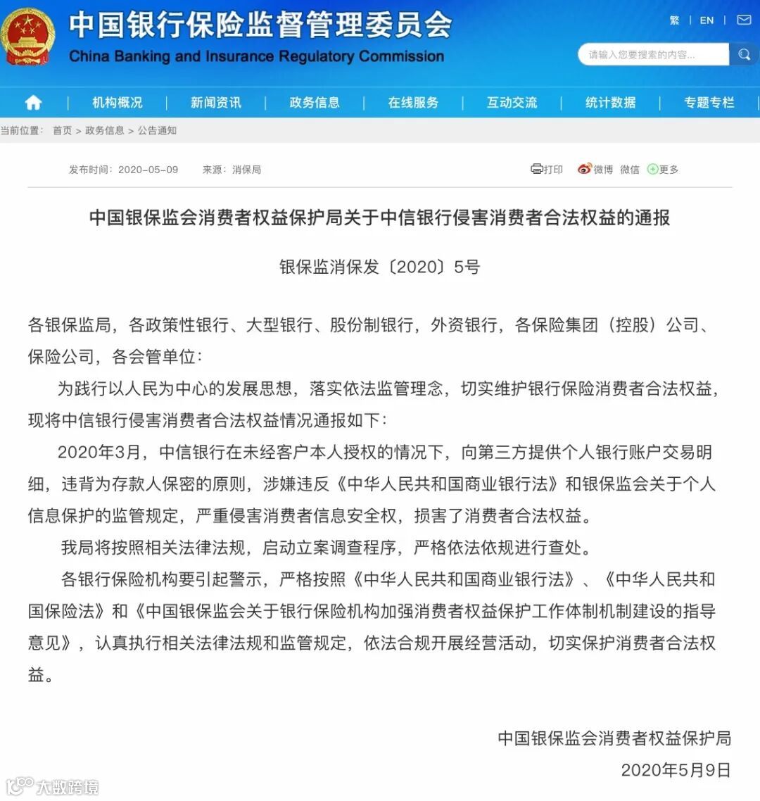 池子怒怼中信银行侵犯自己个人隐私一事又有最新进展,这事引起了银保监会的注意。